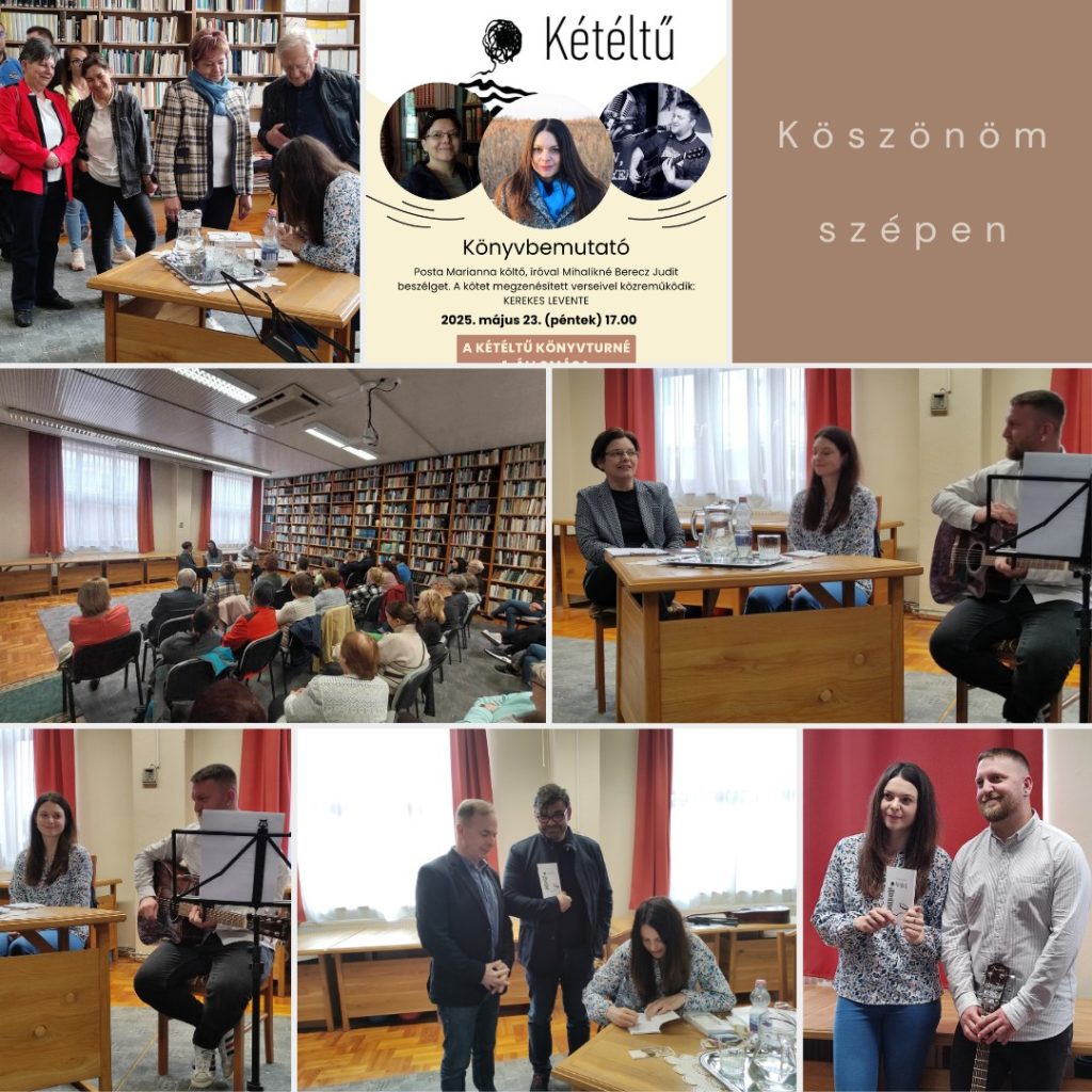 A tegnapi balmazújvárosi bemutató volt a Kétéltű útjának első állomása. Nem tudok elég hálás lenni, azért, mert a könyvtár valamennyi széke foglalt volt. Köszönöm a szeretetteli fogadtatást azoknak, akik eljöttek a bemutatóra és azoknak is, akik szervezték azt. Külön köszönet Mihalikné Berecz Juditnak, aki profin és barátsággal vezényelte le az estét, és Kerekes Leventének, aki zenét csempészett a verseimbe.